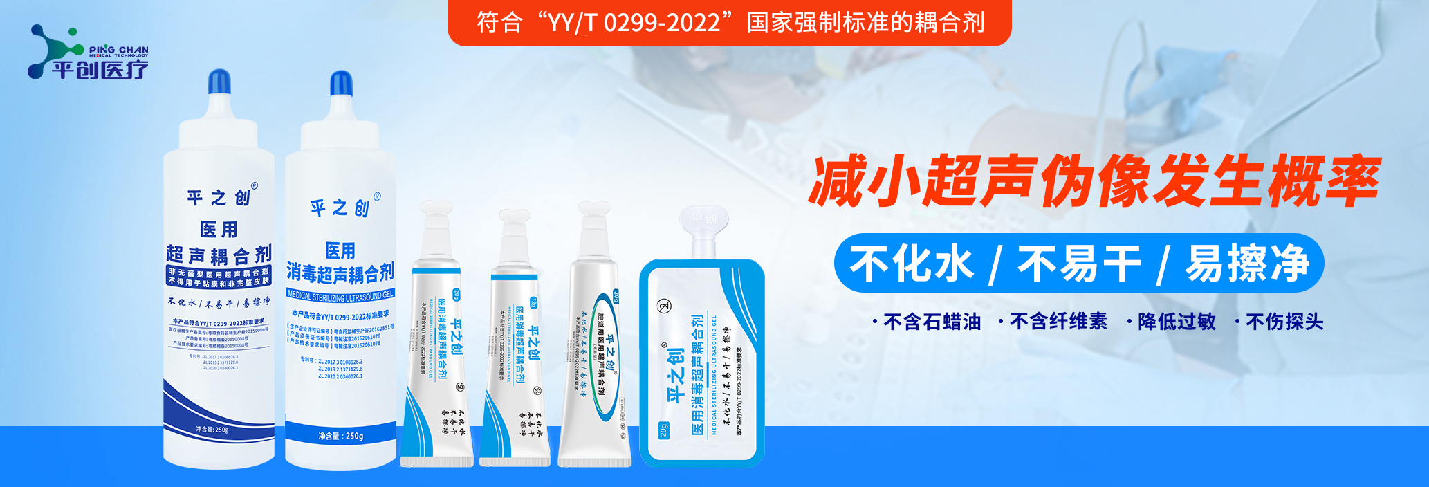 佛山市平創(chuàng)醫(yī)療科技有限公司成立于2012年,是平創(chuàng)醫(yī)療集團旗下的一家子公司,成立初期就與中山大學、廣東醫(yī)學院等大學科研機構建立了密切的合作,專注于研發(fā)、生產(chǎn)醫(yī)用超聲耦合劑系列產(chǎn)品,相繼研發(fā)了普通醫(yī)用超聲耦合劑(I類)、醫(yī)用消毒超聲耦合劑(II類)、醫(yī)用無菌耦...